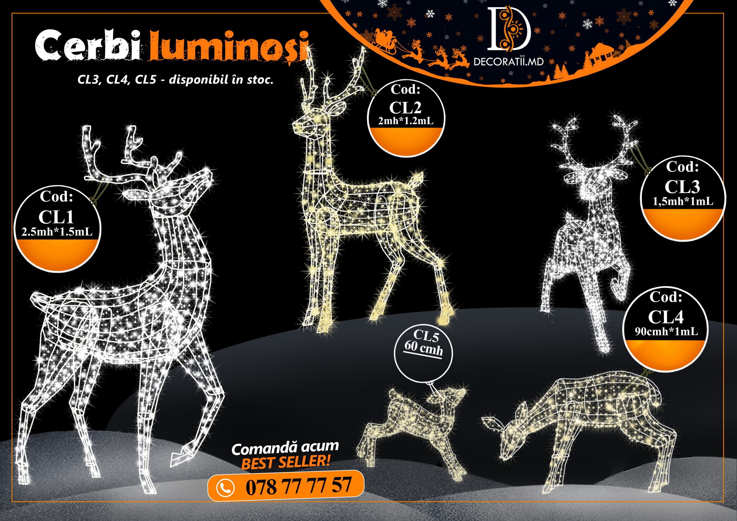 Cei fără de care Moșul nu ar ajunge la șemineele noastre - Cerbii Regali. La Decoratii.md ei sunt cei mai făloși, puternici și înzestrați cu iluminare LED pentru a aduce căldură în inimele voastre.